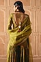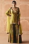 Featuring a parrot green tunic in dupion silk base with hand embroidery. It is paired with printed sharara pants and an organza embroidered dupatta. Accentuate it with statement earrings and heels for a festive occasion or mehendi ceremony.