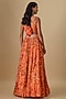 Featuring a peach paneled lehenga in dupion silk base with digital print and mirror hand embroidery. It is paired with an embroidered blouse and a net embroidered dupatta. Pair it with zircon or polki jewellery and heels for a traditional look, Perfect for festive occasions or sangeet ceremony.