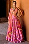 Pink Dupion Silk Ikat Digital Printed Pleated Lehenga Set