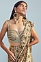 Featuring a sand pre-stitched saree in dupion silk base with embroidery and print. It is paired with a matching open back blouse having embellishments.