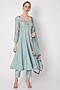 Featuring a sky blue anarkali in modal silk and chanderi silk base with floral thread, cutadana, and pearls embroidery. It is paired with matching dupatta and churidar pants.