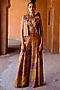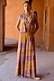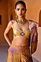 Featuring a yellow jacket in dupion silk base with zari, mirror, sequins and zardosi hand embroidery. It is paired with a printed crop top and box pleated pants. Accentuate it with polki earrings and block heels for festive occasions or daytime functions.