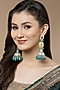 Featuring a pair of gold finish jhumka earrings studded with peach and blue kundan polki including american diamonds, set in mixed metal.