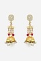 Featuring a pair of gold finish jhumka earrings studded with red and silver kundan polki including american diamonds, set in mixed metal.