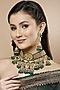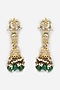 Featuring a pair of gold finish jhumka earrings studded with green and gold kundan polki including american diamonds, set in mixed metal.