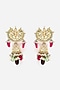 Featuring a pair of gold finish jhumka earrings studded with pink and green kundan polki including american diamonds, set in mixed metal.