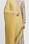 Featuring a light yellow stole in merino wool base with stone work. This contains only one piece.