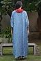 Featuring a blue shibori overlap top in modal silk base with bandhani cowl collar detail, including conch shells and handmade tassels. Accentuate it with pants, stud earrings and heels for an evening look.
