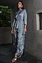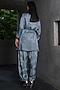 Featuring a grey top in gajji silk base with adjustable waist belt and tassel detailing. It is paired with bandhani pants. Accentuate it with stud earrings and heels for an evening look.