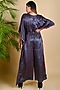 Featuring a midnight blue kaftan jumpsuit in gajji silk base with a waist drawstring.