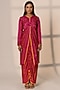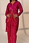 Featuring a pink bandhani top in gajji silk base with front twist detail. It is paired with a waterfall draped skirt. Accentuate it with dangler earrings and heels for a festive look.