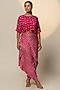 Featuring a pink crop top in gajji silk base with tassels detail. Accentuate it with a dhoti, dangler earrings and heels for a festive look.