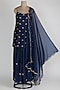 Featuring a blue short kurta which is paired with matching palazzo pants and an organza dupatta.