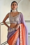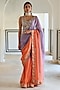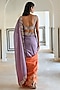 Featuring a lilac and orange ombre saree in viscose organza base with floral embroidery. It is paired with a raw satin blouse having floral jaal embroidery and a V-neckline. Accentuate it with statement jewellery and heels for wedding ceremonies.