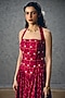 EASE features a maroon checkered corset maxi dress in poplin base with gathered detail and embroidery, offering an effortless and breezy silhouette. Style it with ankle boots, a duffle bag, and a hat for summer outing or vacations.