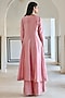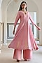 Featuring a mauve pink kali anarkali in silk base with 3/4th sleeves and floral butti. It is paired with silk palazzo pants. Accentuate it with minimal jewellery and heels for festive occasions or sangeet ceremonies.