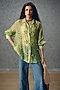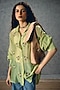 EASE features a pista green shirt in silk organza base with floral motif embroidery, offering an effortless and breezy silhouette. Style it with strappy flats, a suede bag, and a hat for summer outing, vacations, or a cruise party.