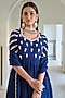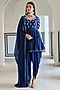Featuring a royal blue peplum top in pure crepe base with raglan sleeves and floral butti embroidery. It is paired with a dhoti and a viscose organza dupatta. Accentuate it with minimal jewellery and heels for festive occasions or sangeet ceremonies.