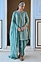 Featuring a turquoise blue kurta in silk base with leaf embroidery. It is paired with dhoti and a viscose organza dupatta. Accentuate it with statement jewellery and heels for a festive occasion or pooja ceremony.