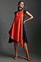 Featuring a blue and orange asymmetrical dress in cotton blend base with a chinese collar and a zipper