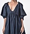 Featuring a deep blue elasticated dress in cotton blend base.