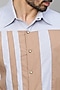 Featuring a blue shirt in a cotton blend base with light khaki patches. This contains only one piece.