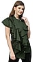 Featuring a military green shirt in a poplin base with an extended collar and frills. This contains only one piece.
