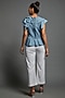 Slate Blue Cotton Blend Ruffled Peplum Top