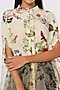 Featuring a pale yellow half and half cape in crepe and organza base with print and scalloped hem detail. It is paired with a contrasting top. This contains only two pieces.