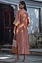 Featuring a multi-colored A-Line dress in metallic silk tissue base with a v-neckline, a side slit and stripe detail. Accentuate it with statement earrings and heels for a cocktail, sangeet or a ball party.