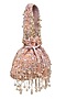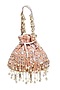 Featuring a beige potli in velvet with crystals, pearls, sitara and beaded embellishments. It has a faux suede underlining and an embroidered handle. A perfect accessory for an evening party or dinner.