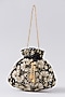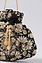 Featuring a black round-shaped bag in velvet base with cutdana, beads tassels, zardosi, crystal and stone embellishments. It has a metal chain.