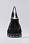 Featuring a black potli bag in velvet and faux suede base with hanging crystals, sequins and nalki hand embroidery. It comes with a hand embroidered handle.