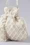 Featuring a silver potli bag in velvet and suede base with beaded tassels, cutdana, pearls, stones, nalki hand embroidery. It has a rhinestone embellished metal chain and a brocade lining.