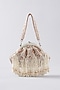 Featuring a white clutch in velvet and faux suede base with beaded tassels, cutdana, sequins and pearl embroidery. It comes with an embroidered handle strap.