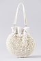 Featuring a white potli bag in velvet base with beads and faux pearl hanging details.