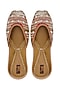 Featuring a pair of red jutti in leather base with sequins and mirror work.