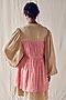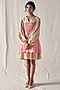 Featuring a beige and light red knee-length dress in khadi checks and organic cotton base with tiny bead detailing, pleated yoke, corded side panels, oversized balloon sleeves, and double layers.