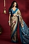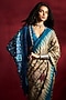 Featuring a beige saree in gicha tissue base with handpaint and embroidery. It is paired with a pure raw silk embroidered blouse. Accentuate it with statement earrings and heels for a wedding, engagement or sangeet ceremony.