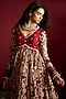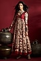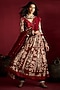 Featuring a maroon anarkali in silk and raw silk base with handpaint and embroidery. It is paired with pants and an organza dupatta. Accentuate it with statement jewellery and block heels for festive occasions, weddings or engagement ceremony.