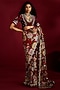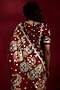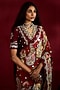Featuring a maroon saree in silk base with handpaint and embroidery. It is paired with a pure raw silk embroidered blouse. Accentuate it with statement earrings and heels for a wedding, engagement or sangeet ceremony.