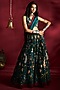 Featuring a peacock green lehenga in silk base with handpaint. It is paired with an embroidered blouse and a dupatta. Accentuate it with dangler earrings and heels for a wedding or engagement ceremony.
