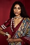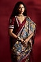 Featuring a teal saree in gicha tissue base with handpaint and embroidery. It is paired with a pure raw silk embroidered blouse. Accentuate it with statement earrings and heels for a wedding, engagement or sangeet ceremony.