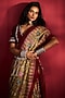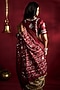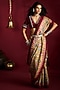 Featuring a yellow saree in gicha tissue base with handpaint and embroidery. It is paired with a pure raw silk embroidered blouse. Accentuate it with statement earrings and heels for a festive occasion, haldi, engagement or sangeet ceremony.