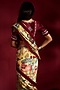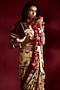 Featuring a yellow saree in silk base with handpaint. It is paired with a pure raw silk embroidered blouse. Accentuate it with statement earrings and heels for a wedding, engagement or sangeet ceremony.