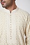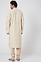 Featuring a light beige kurta in silk chanderi base with cutwork embroidery. It is paired with matching pants.