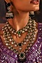 Black Rhodium Finish Emerald Stone & Kundan Polki Layered Necklace Set