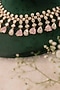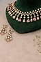 Featuring a black rhodium finish necklace studded with kundan polki and pink stones, set in mixed metal. It is paired with a matching pair of earrings. Ideal for festive occasions or wedding celebrations.