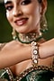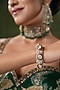 Gold Finish Cubic Zirconia & Red Tourmaline Stone Bangles (Set Of 2)