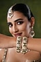 Featuring a pair of gold finish bangles studded with kundan polki and green stones, set in mixed metal. It has a screw closure. Ideal for festive occasions, weddings, or elevating your elegant evening look.